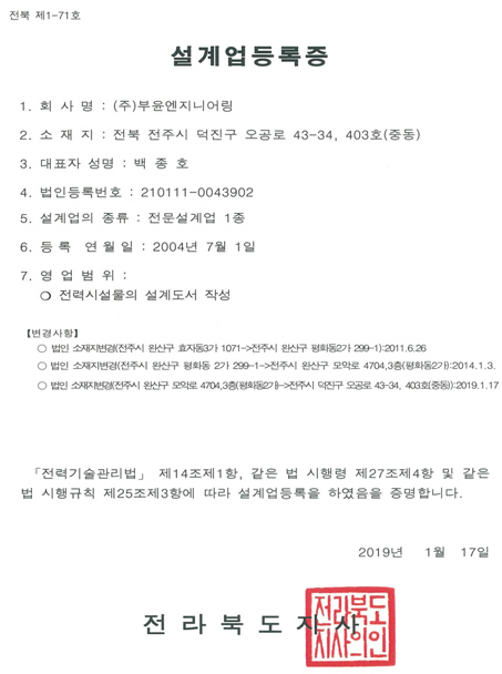 (주)부윤엔지니어링 | 대표: 백종호 | 전주시 덕진구 오공로 43-34, 4층(중동 777-5)