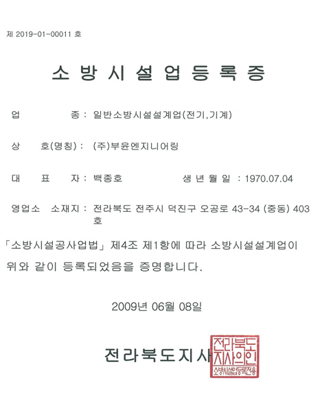 (주)부윤엔지니어링 | 대표: 백종호 | 전주시 덕진구 오공로 43-34, 4층(중동 777-5)