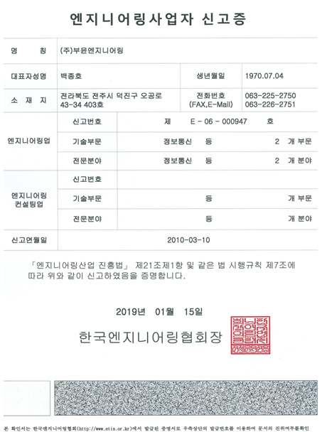 (주)부윤엔지니어링 | 대표: 백종호 | 전주시 덕진구 오공로 43-34, 4층(중동 777-5)